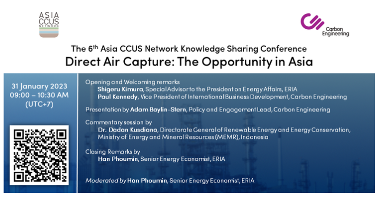 Online“Direct Air Capture: The Opportunity in Asia” Tuesday, 31 January 2023 | 09:00 – 10:30 (UTC+7) - Online Conference Carbon Capture, Utilisation and Storage (CCUS) technologies are expected to play an important role in supporting clean energy transitions across Asia as an emissions reductions pathway for fossil-fuel intensive power and industry sectors. Direct Air Capture […]