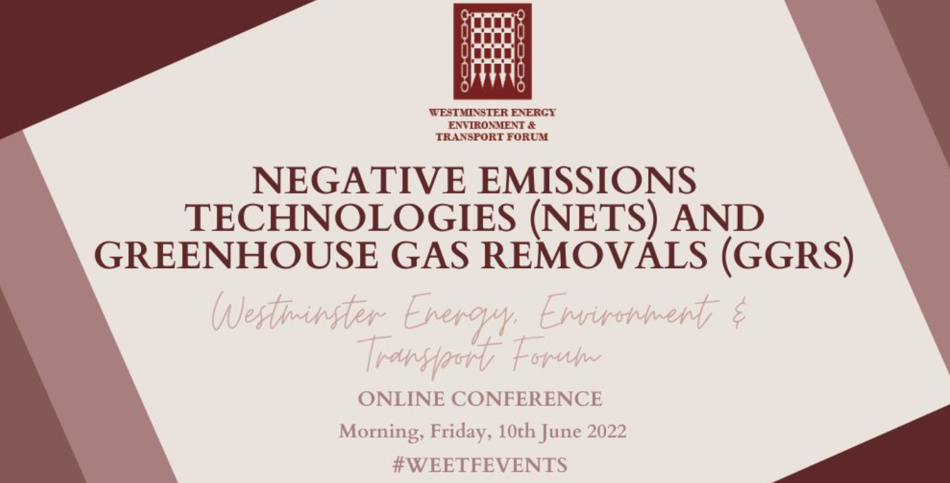 Westminster Energy Environment & Transport Forum policy conference on Negative Emissions Technologies (NET) and greenhouse gas removals (GGRs)