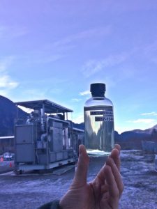 This recent achievement builds on a lot of previous work and effort here at CE. We have been developing direct air capture technology since our inception in 2009, and in October 2015, we commissioned a DAC pilot plant here in Squamish B.C. which captures and purifies 1 tonne of CO2 per day from the atmosphere (see our previous blog post, and video coverage). For the past year, our engineering and operations teams have been building on this by installing water electrolysis and fuel synthesis modules (another post on the arrival of this equipment, from Greyrock Energy), which once combined with our DAC pilot, give us the capability to synthesize roughly 1 barrel of fuel per day. This month we successfully integrated and started up our equipment, and have now produced the first small quantities of liquid fuels.