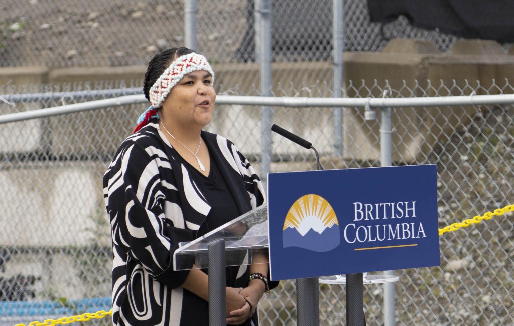 Squamish Nation Councillor Joyce Williams speaking at a media event announcing a large-scale commercial facility in Canada to produce fuel from air.